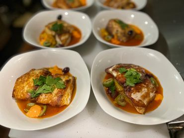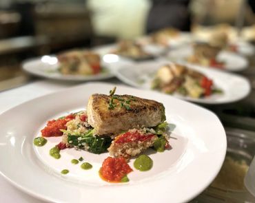We hosted a "Taste of Italy" wine dinner on the last Monday of March and we believe it to be one of the most successful yet! Not only was the room filled with great energy and wonderful people but Chef Scott and Paul Serafimoff crushed it once again with the four course dinner menu and the wine pairing. Paul took us on a wine tour through Northern Italy and walked us through each scent and profile of both the wine and dish. Every pairing was exquisite! Guests got a chance to place orders of wine afterwards at discounted prices and let me tell you they took advantage of the deals! Let's do a recap of what was being served... The opening wine was a Pieropan Soave Classico made from a blend of 85% Garganega & 15% Trebbiano di Soave from the Veneto Region. Dry with a medium body and leaning towards the acidic side, Soave carried notes of tree fruits (pear , apples), citrus (lemon, grapefruit) and mid earthy tones (stone honey). It was enjoyed with a family style charcuterie board of assorted dried meats, cheeses, olives & artichokes and we must not forget to mention the homemade focaccia bread Chef Jeff made to go with it as an amuse bouche. Divine!! For the first course Chef Scott prepared a Diver Scallop Crudo with fragments of citrus, pickled Anaheim Chiles, Torn Herbs and Olive Oil paired with a white Tuscan Vermentino called SOLOSOLE. The medium bodied wine paired well with it's hints of flowers and yellow fruit. On to the second course that consisted of an "out of this world" Short Rib Raviolis with parmesan broth, confit vegetables and braised greens and paired with a Chianti Classico by Castello Di Albola from Toscana made of Sangiovese grapes. Notes of strawberries, oak, vanilla, tobacco & leather filled the glass while the palate exuded a dry, medium, acidic profile. The third course, was definitely a house favorite of the night all around. An almost fully bold Nebbiolo by RATTI from Langhe, Piemonte was poured. Dry, with red fruit notes & earthier notes such as leather, tar, tobacco, vanilla and oak paired nicely with the Porchetta dish accompanied by soft herb polenta, arugula salad, shaved fennel, radish & pork jus. By this time our guests were so satisfied but we couldn't let them leave without some Ricotta Cheesecake that had Mango puree and Almond Florentine. Allegrini by Palazzo Della Torre, a red from Veneto and made of Corvina grapes. Leather, smoke, black fruits and chocolate lent their notes to the pairing. What an amazing and unusual pairing but it worked so well! We're so happy with the outcomes of these events, they take a lot of work to put together, but at the end of it all it's all worth it and we begin to gather ideas for the next one!! Will you be joining?