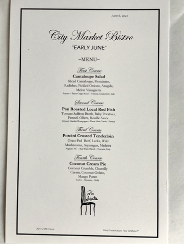 This was the second edition of our wine dinner series for 26 Seats, a limited seating event hosted by City Market Bistro. Once again we partnered up with Paul Serafimoff of Breakthru Beverage Group, and old pal and work colleague of Chef Scott's from his earlier days in the industry. Being that it was the end of summer, Chef Scott designed a menu that paid homage to some of the best ingredients of the summer season. The Four Course meal kicked off with a beautiful Florida Heirloom Tomato Salad, Watermelon, Basil Gel, & Burrata, the perfect opener to set the palate for what was to follow. Summer Lobster Agnolotti, Mustard Crusted Lamb Loin, and finished with a Mascarpone Panna Cotta with Roasted Peaches, Candied Almonds, and Brown Butter Crumbles. Paul took us on a trip to South Africa, Sonoma Valley, & Hungary. The Royal Takaji, the creamy and crisp fortified pairing with the dessert was an exquisite choice to end the night. We had many returning guests that once again enjoyed the experience through and through. Stay connected with us by subscribing to our website if you're interested in receiving notices of our upcoming events!