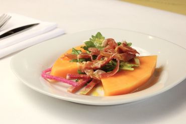 The opening number created to ignite the palette was a flaming red Piquillo Pepper stuffed with a savory Tuna Tartare with a Salsa Verde paired with a Peach Bellini. The first course was a fresh Cantaloupe Salad with peppery Arugula, crunchy Watermelon Radishes, Salty Prosciutto di Parma and a melon vinaigrette. Paul paired it with an Italian Pinot Grigio Rose, displaying it's beautiful pink hue, on the nose it expresses the fruity scents of lime, peach & citrus flowers, while on the palette it was well balanced with multiple layers. Second on the roster was a local Red Fish that Chef Scott pan roasted than place it in a broth bath made up of Tomato Saffron and Fennel. Vincent Giardini's Bourgogne, a red burgundy from eastern France, paired delightfully with it. Between the wood aging, ripe acidity and peppered flavors, the selection was a hit among guests. Course number three was a Porcini Crusted Grass Fed Tenderloin with Roasted Mushrooms, Pencil Asparagus, Melted Leeks and a Madeira Jus. Paul was excited to pair this course with the Red Blend, Argiano Non Confunditur a full bodied, smooth tannin, blend of Merlot, Sangiovese, Cabernet & Syrah. He shared his recent experience at the vineyards in Tuscany with our guests. A Coconut Cream Pie with a Feuilletine Crust was the closer for the dining experience and the sweetness didn't stop there, a Sicilian Moscato that goes by the name of Corvo. We actually are considering carrying it in house, because we loved it so much. For those who enjoy a white wine on the sweeter side, this is one to indulge in.
