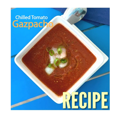 Place all ingredients (except Olive Oil) in a blender. Puree the mixture on medium speed. When the soup is fully pureed, stop and check seasonings, adjust to your own taste and add Olive Oil. Resume the blender on medium speed until fully emulsified. Place the mixture in a storage container and refrigerate for a minimum of 2 hours. Serve in a chilled bowl and garnish with chilled Baby Shrimp, Extra Virgin Olive Oil and finely chopped Scallions. Enjoy!